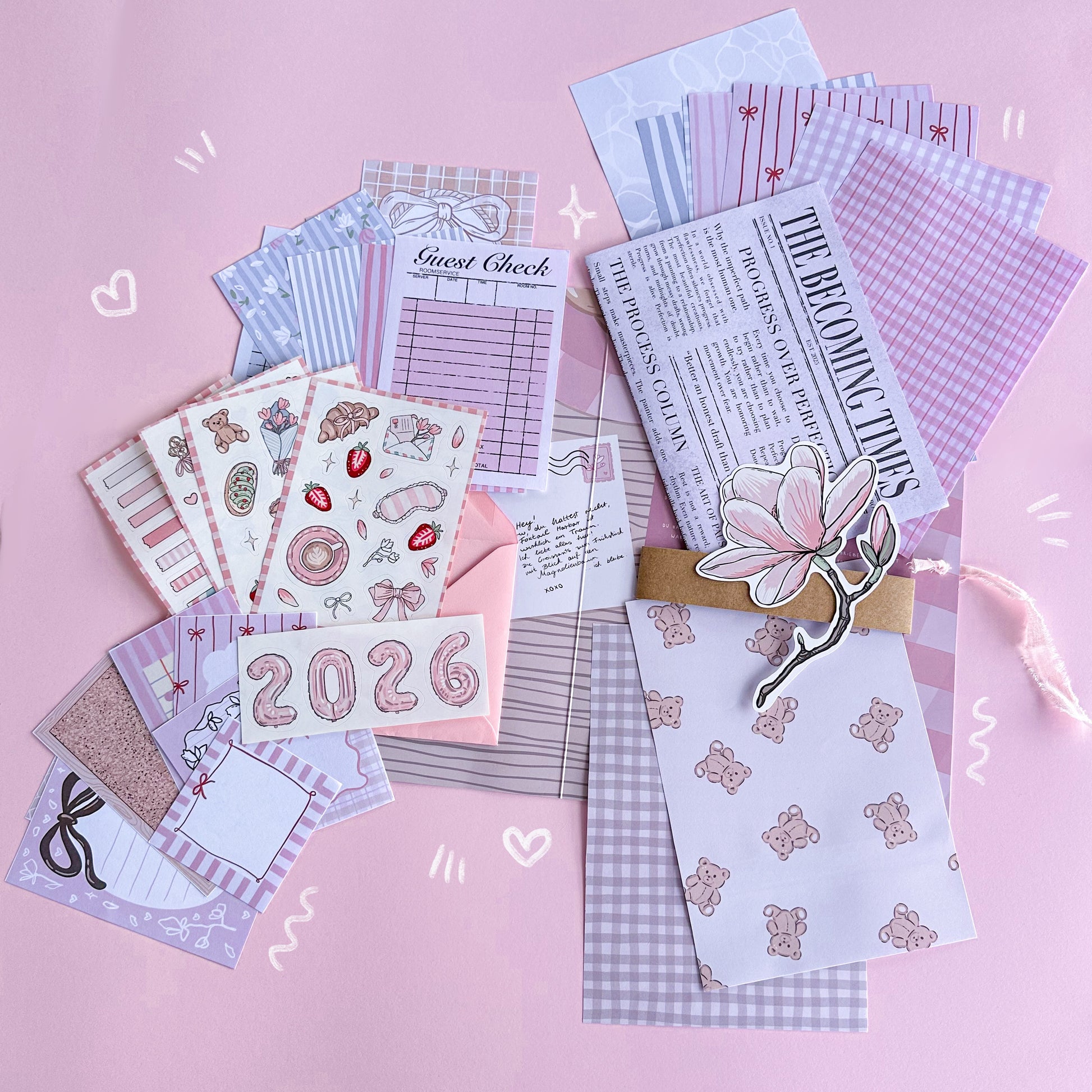 Das Magnolia Hotel Journal Kit ist perfekt für alle, die das Journaling lieben und gerne mit Musterpapieren, Stickern und liebevollen Details gestalten. Mit einer harmonischen Auswahl an pastellfarbenen Designs, die alle von Foxy Draws selbst entworfen wurden, lädt dieses Kit dazu ein, kreativ zu werden und eigene Geschichten festzuhalten.